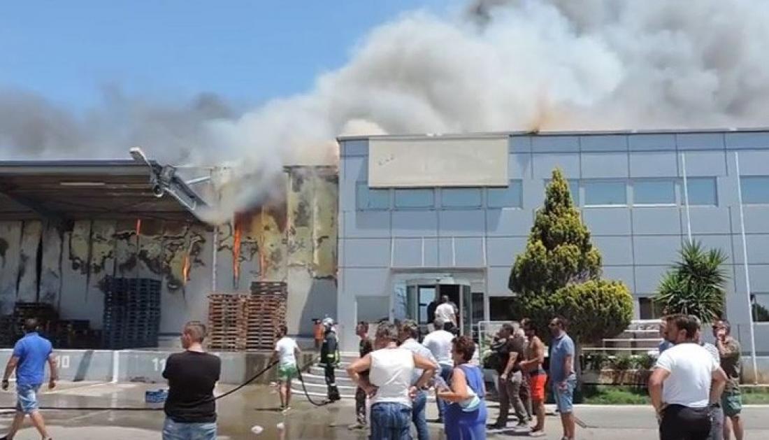 Στις φλόγες συσκευαστήριο αγροτικών προϊόντων στο Τυμπάκι (ΒΙΝΤΕΟ)