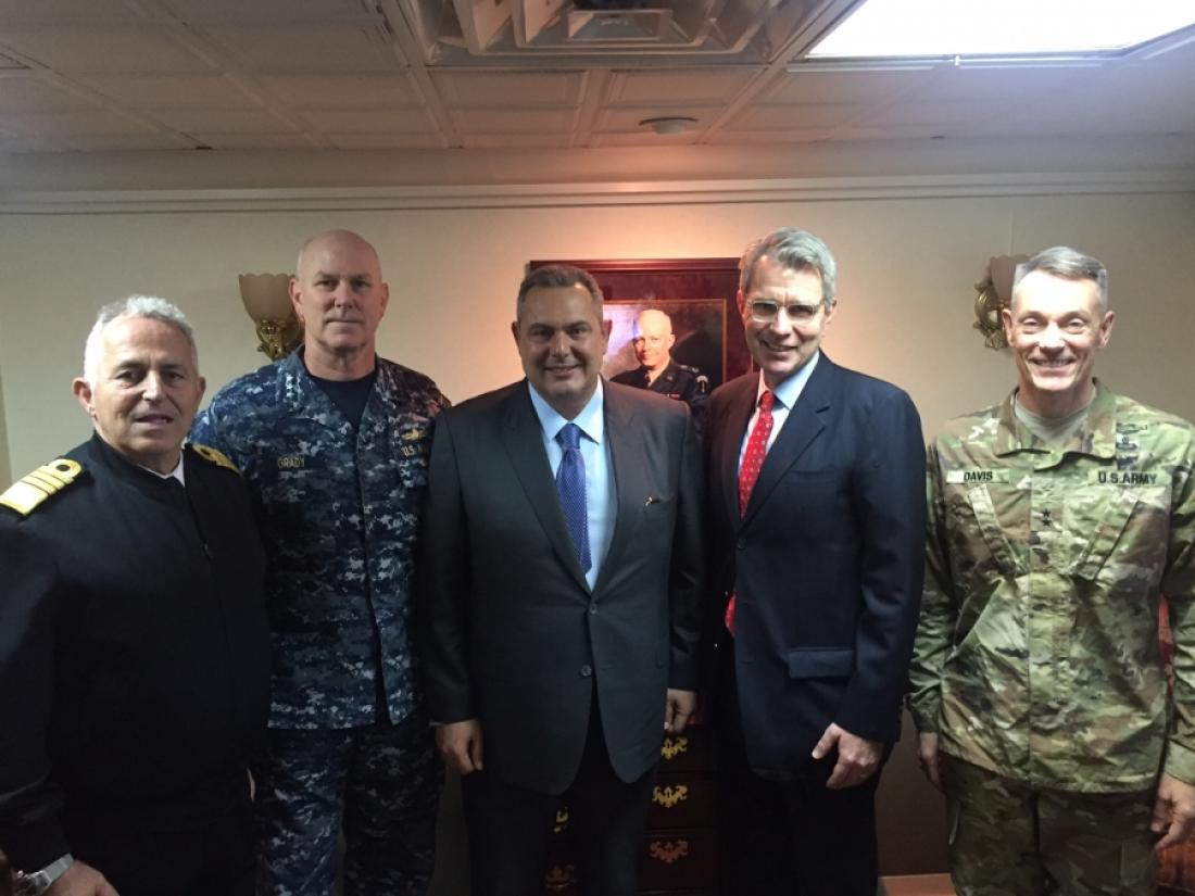 Νωρίς το πρωί, ο κ. Καμμένος, συνοδευόμενος από τον αρχηγό ΓΕΕΘΑ ναύαρχο Ευάγγελο Αποστολάκη και τον αρχηγό ΓΕΝ αντιναύαρχο Γεώργιο Γιακουμάκη , επισκέφθηκαν το αεροπλανοφόρο "USS Dwight D. Eisenhower", το οποίο πλέει στα διεθνή ύδατα νοτίως της Κρήτης στο πλαίσιο ναυτικών επιχειρήσεων στην ανατολική Μεσόγειο.