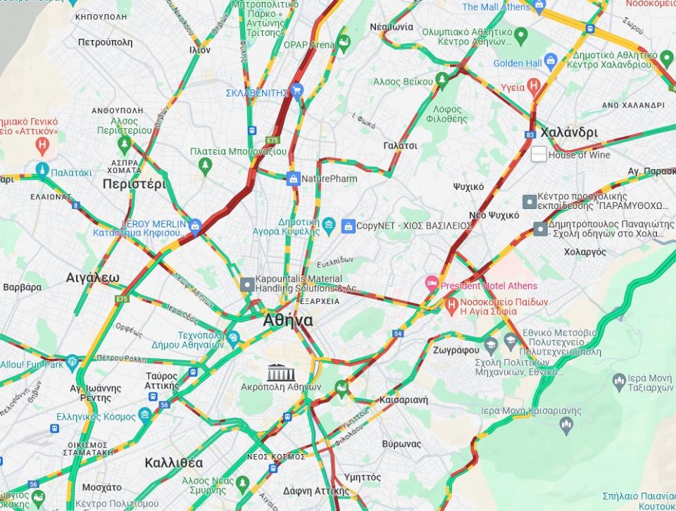 «Στο κόκκινο» πολλοί δρόμοι της Αθήνας: Καραμπόλα πέντε οχημάτων στην Κηφισίας στο ύψος του Ν. Ψυχικού — Δείτε LIVE την κίνηση