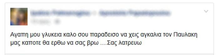 Οι σοροί της 33χρονης και του 3χρονου γιου της αναμένονται σήμερα στην σοκαρισμένη πόλη της Πτολεμαΐδας, όπου αύριο θα τελεστεί η εξόδιος ακολουθία τους. Νωρίτερα ο πατέρας είχε αποχαιρετίσει τη γυναίκα του με ένα μήνυμα στον λογαριασμό της στο Facebook, γράφοντάς της: «Αγάπη μου γλυκιά, καλό παράδεισο. Να έχεις αγκαλιά τον Παυλάκη μας. Κάποτε θα έρθω να σας βρω. Σας λατρεύω».