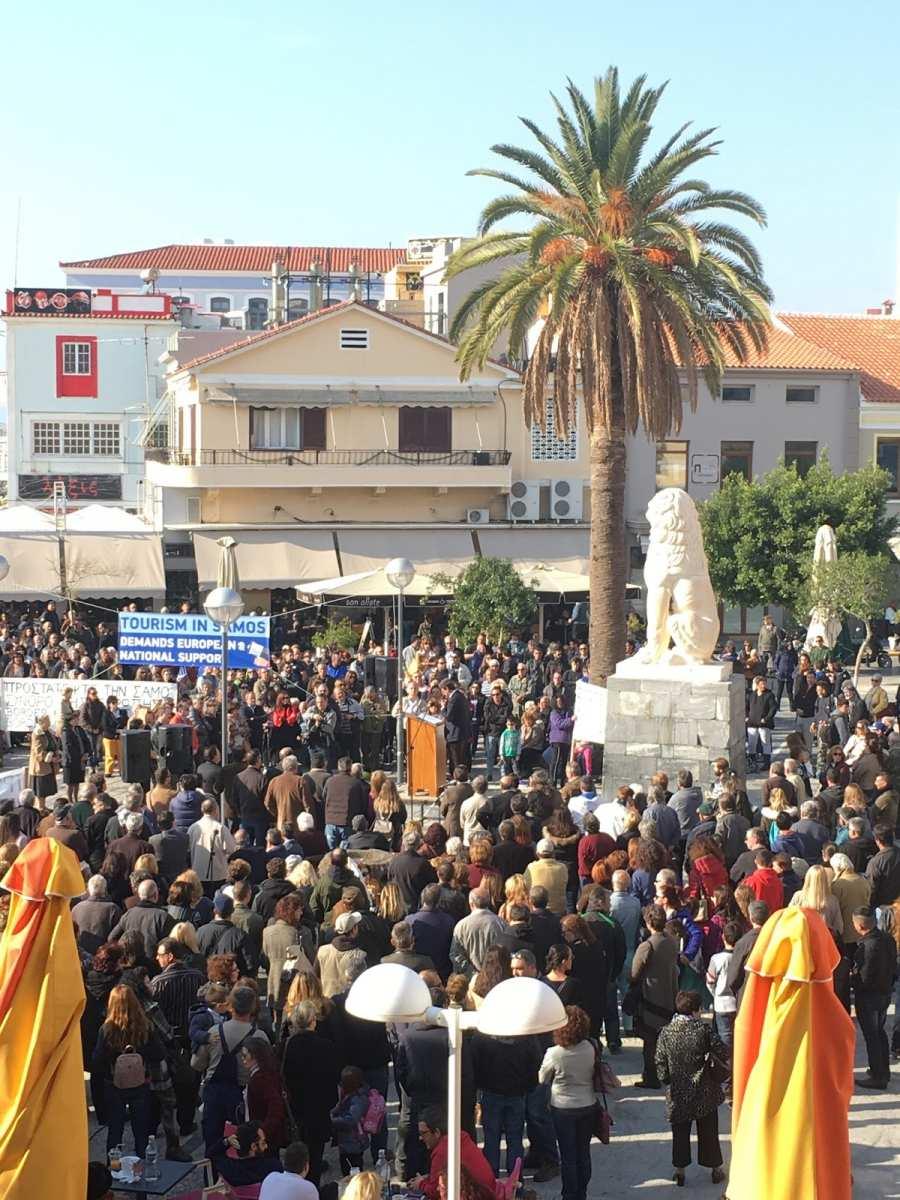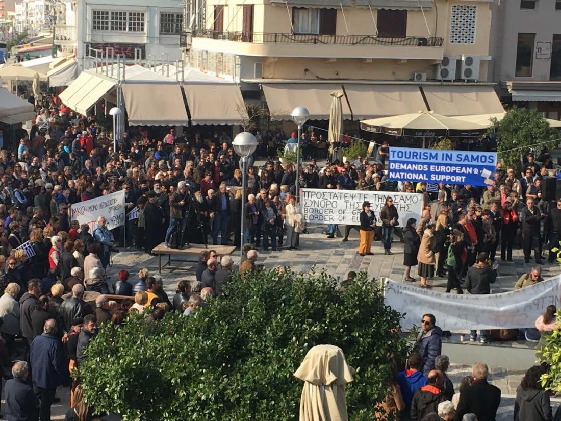 Ο πρόεδρος της Ενωσης Ξενοδόχων του νησιού, Γιώργος Κυριαζής επεσήμανε πως «εμείς οι Σάμιοι έχουμε δείξει όλα αυτά τα χρόνια τη φιλοξενία μας και την αγάπη προς κάθε ξένο που μας επισκέπτεται. Αυτό έχουμε δείξει από το 2011 προς όλους τους πρόσφυγες-μετανάστες που απροσκάλεστοι ήρθαν στο νησί μας. Τους βοηθήσαμε, τους δώσαμε τροφή και νερό από το υστέρημά μας. Τώρα ήρθε η ώρα για τη δική μας αξιοπρέπεια, για τη δική μας ανθρωπιά, για τη δική μας επιβίωση για την ασφάλεια μας. Ήρθε η ώρα που αυτή η μεγάλη οικογένεια που ανήκουμε, η ΕΕ να δείξει ότι αλληλεγγύη είναι και για τους πολίτες αυτών των ακριτικών νησιών».