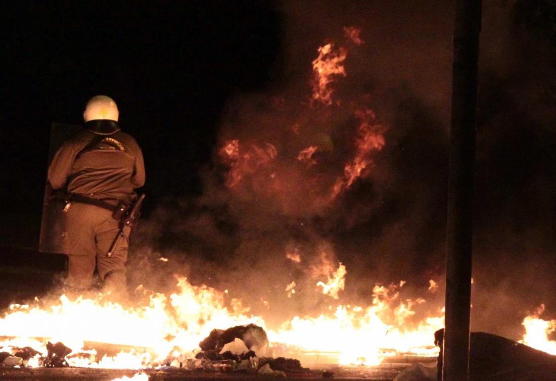 Ομάδα περίπου 100 αντιεξουσιαστών περίπου στις 10 το βράδυ επιτέθηκε με βόμβες μολότοφ εναντίον διμοιρίας των ΜΑΤ επί της οδού Τοσίτσα και έβαλαν φωτιά σε κάδους απορριμμάτων. Στη συνέχεια ταμπουρώθηκαν στο Πολυτεχνείο, απ' όπου συνέχιζαν να εκτοξεύουν βόμβες μολότοφ εναντίον των ΜΑΤ.