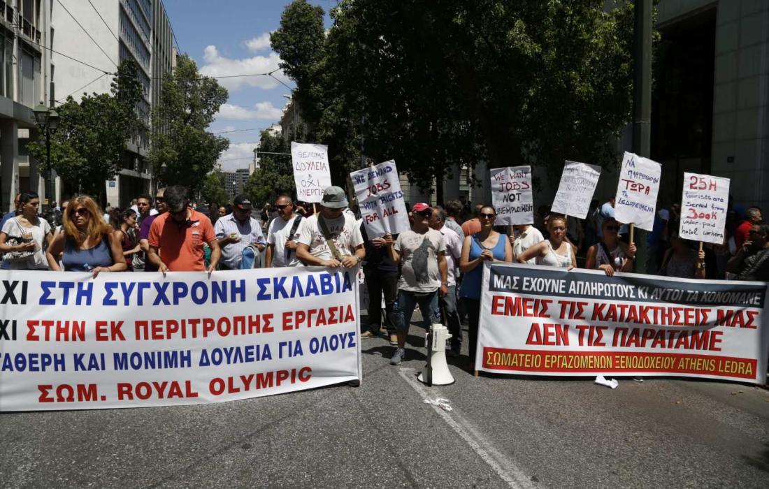 Ανάμεσα στους διαδηλωτές και εργαζόμενοι από το ξενοδοχείο Athens Ledra , αλλά και εργαζόμενοι της ΒΙΟΜΕ οι οποίοι έχουν στήσει σκηνές έξω από το υπουργείο απο την Παρασκευή.