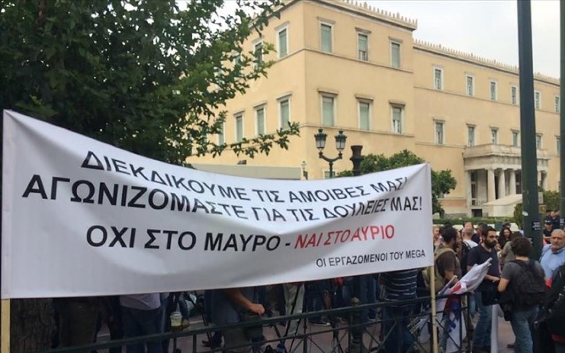 Συγκέντρωση εργαζομένων των ιδιωτικών καναλιών έξω από τη Βουλή