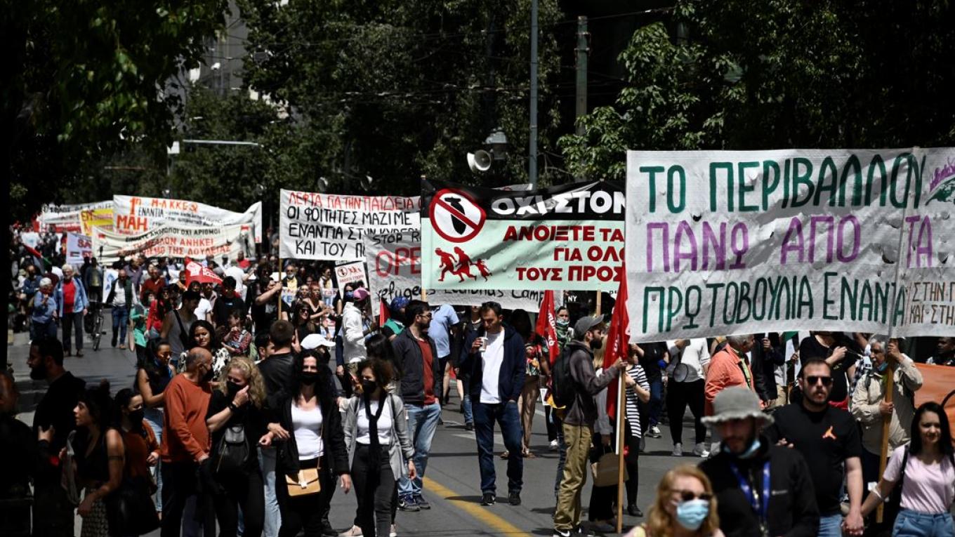 Πλήθος κόσμου συγκεντρώθηκε από νωρίς στην Πλατεία Κλαυθμώνος, ανταποκρινόμενο στο κάλεσμα των διοργανωτών. Τα αιτήματα για σταθερή εργασία για όλους και όλες, επαναφορά συλλογικών συμβάσεων και αύξηση του βασικού μισθού ακόμα περισσότερο, κυριαρχούσαν από τα μεγάφωνα.