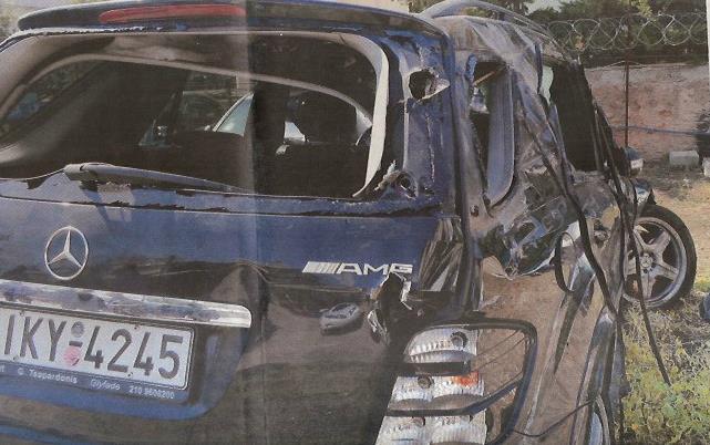 Στις φωτογραφίες φαίνονται και οι μπάρες που διαπέρασαν την ηλιοροφή του αυτοκινήτου μετά την ανατροπή του.