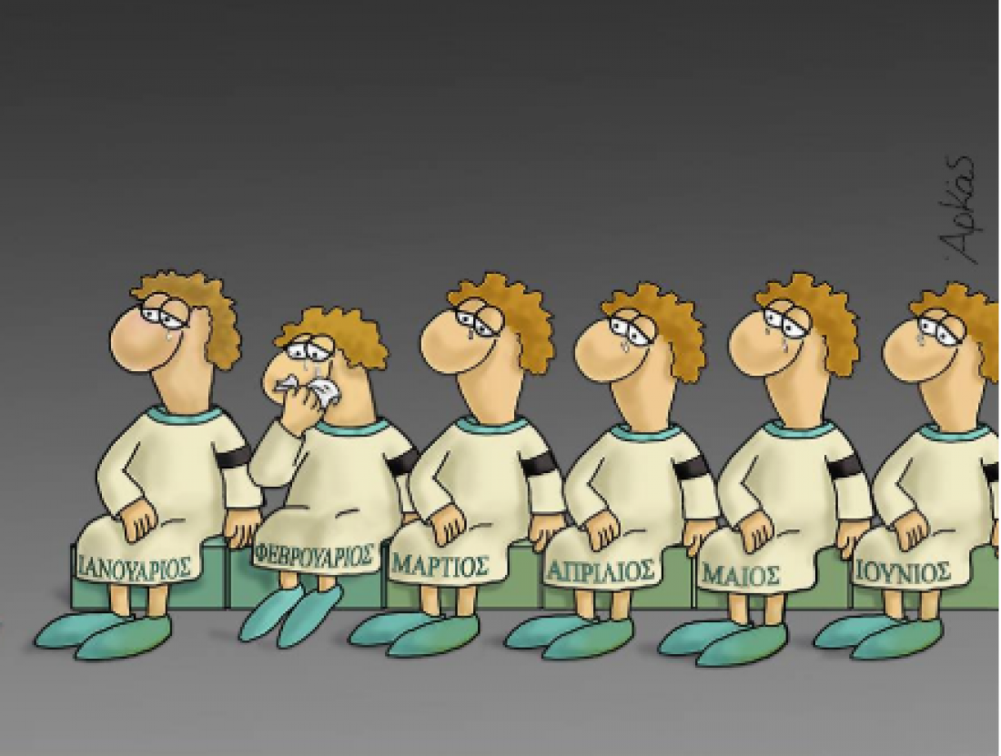 Πέρασαν 8 ημέρες από την εθνική τραγωδία, και ο Αρκάς επέλεξε ένα εξαιρετικό σκίτσο με τους αγαπημένους του μήνες, που αυτή την φορά δεν κοροϊδεύει ο ένας τον άλλον, αλλά δεν λένε τίποτα.