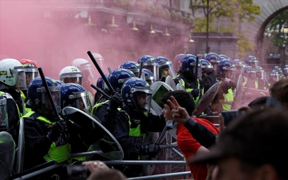 Η αστυνομία δήλωσε σήμερα πως ορισμένοι έφεραν όπλα στα συλλαλητήρια στο Λονδίνο. Επέβαλε περιορισμούς στη διαδρομή και στις δύο ομάδες και δήλωσαν ότι οι συγκεντρώσεις πρέπει να λήξουν έως τις 19:00.