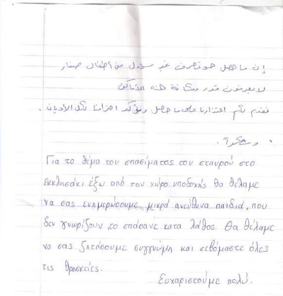 Συγνώμη για το σπάσιμο ενός σταυρού από εκκλησάκι ζήτησαν οι πρόσφυγες στη Θέρμη