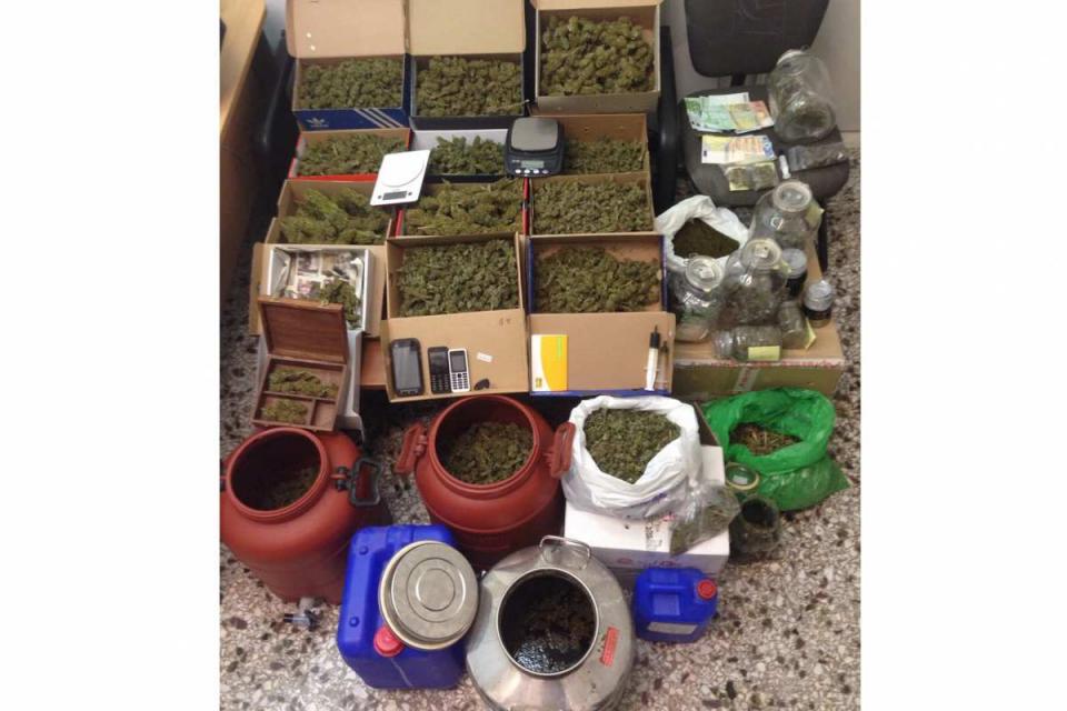 Κατασχέθηκαν 5 κιλά και 740 γρ. ακατέργαστη κάνναβη, 5,2 κιλά κάνναβης σε φάση προπαρασκευής χασισέλαιου, δύο ζυγαριές ακριβείας, δίκυκλη μοτοσικλέτα, κ.α.