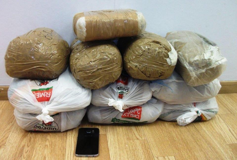 Στη συνέχεια, ακολούθησε καταδίωξη κατά την διάρκεια της οποίας ο δεύτερος δράστης αποβιβάσθηκε και τράπηκε σε φυγή, ενώ λίγο αργότερα επετεύχθη η ακινητοποιήση του οχήματος και η σύλληψη του 42χρονου. Όπως διαπιστώθηκε από την έλεγχο, το εσωτερικό της τσάντας περιείχε κάνναβη εντός δύο νάιλον συσκευασιών, συνολικού βάρους 1.060 γραμμαρίων.