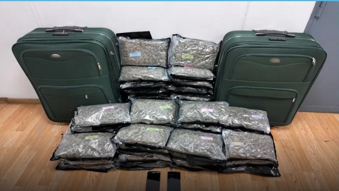 Κατά τον έλεγχο στις αποσκευές της, βρέθηκαν επιμελώς κρυμμένα σε νάιλον συσκευασίες 24 κιλά και 500 γραμμάρια ακατέργαστης κάνναβης υδροπονικής καλλιέργειας, ενώ κατασχέθηκαν και δύο κινητά τηλέφωνα. Η συλληφθείσα οδηγήθηκε στην αρμόδια εισαγγελική αρχή.