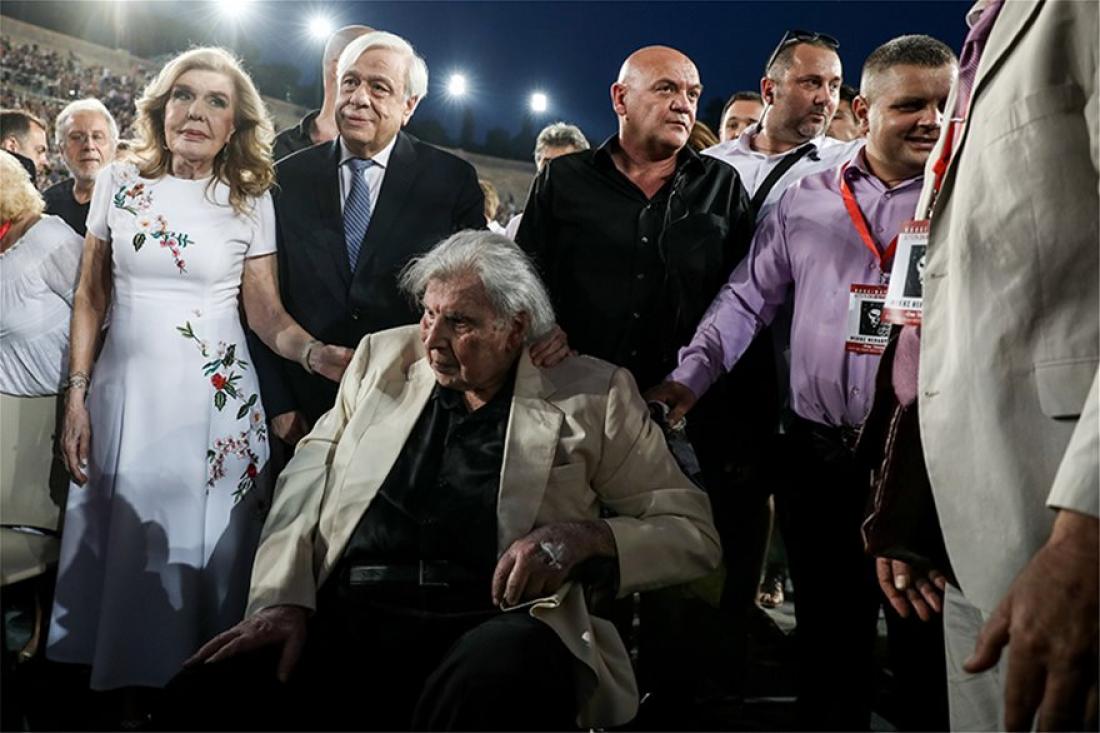 Όταν ο κόσμος είδε τον Μίκη να φτάνει σηκώθηκε όρθιος και τον αποθέωσε.Δίπλα του και ο