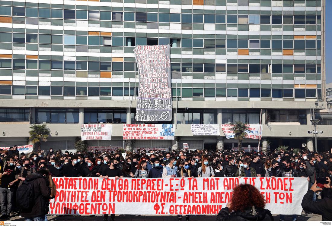 Συνεχίζεται η κατάληψη στο κτίριο διοίκησης του Αριστοτελείου Πανεπιστημίου Θεσσαλονίκης από ομάδα 15-20 ατόμων που δεν ακολούθησαν την πορεία των φοιτητικών παρατάξεων αλλά παρέμειναν μέσα στο κτίριο.
