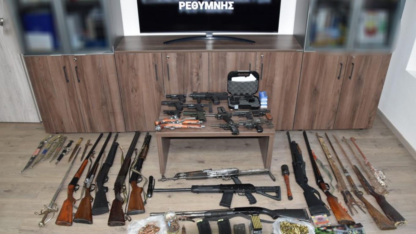 Συγκεκριμένα, σύμφωνα με ανακοίνωση της τοπικής ΕΛ.ΑΣ., κατά τη διάρκεια ελέγχων σε περιοχές του του Δήμου Αγίου Βασιλείου, στο Ρέθυμνο τις τελευταίες ημέρες, συνελήφθησαν πέντε άτομα από 36 έως 52 ετών για παραβάσεις της νομοθεσίας περί όπλων. Στην κατοχή τους βρέθηκαν και κατασχέθηκαν μεταξύ άλλων ένα πολεμικό τυφέκιο τύπου Kalashnikov κι ένα ακόμα τύπου Enfield, καθώς και άλλα κυνηγετικά και πυροβόλα όπλα, ενώ συνολικά εντοπίστηκαν πάνω από 1.100 πυροδοτημένα φυσίγγια.