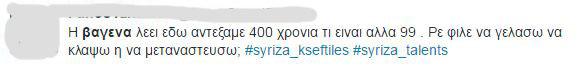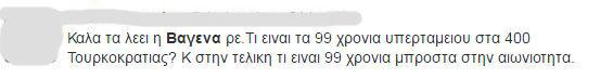 Όπως ήταν αναμενόμενο oι χρήστες του μέσου κοινωνικής δικτύωσης σχολίασαν με τον δικό τους τρόπο τη δήλωση της Άννας Βαγενά, άλλοι με χιουμοριστικό τρόπο και άλλοι ασκώντας κριτική, ακόμα και πολύ σκληρή, στη βουλευτή, η οποία σε σνέντευξή της είπε, "Δεν μας τρομάζουν τα 99 χρόνια διάρκειας του ταμείου Αποκρατικοποιήσεων. Εδώ η Ελλάδα ήταν υπό Τουρκική σκλαβιά για 400 χρόνια και άντεξε." Το Twitter πήρε φωτιά από τα σχόλια. Δείτε ορισμένα από αυτά: