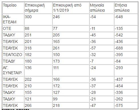 Σύμφωνα με την εφημερίδα Ελεύθερος Τύπος οι συνταξιούχοι θα χάσουν από την επικουρική τους σύνταξη ποσά από 11 ως και 45 ευρώ το μήνα γεγονός που σημαίνει ότι θα έχουν απώλειες από 84 ως και 688 ευρώ το χρόνο, ένα ποσό που μεταφράζεται σε δύο συντάξεις!