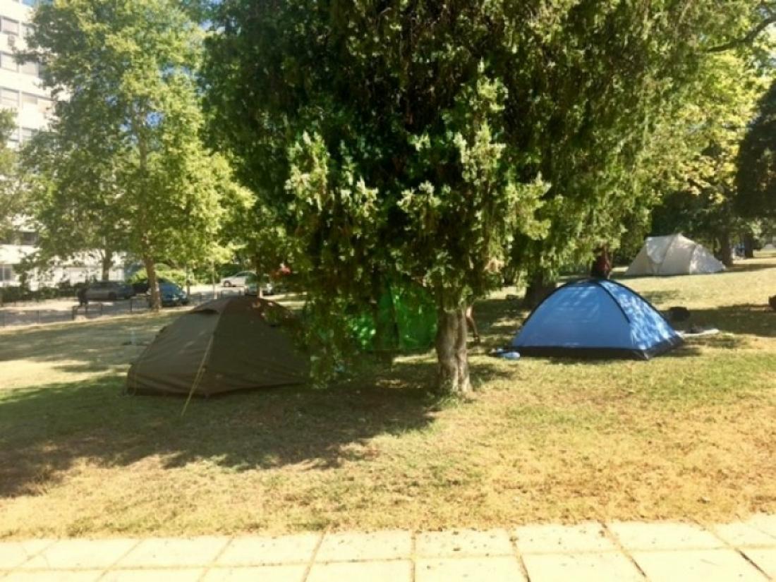 Συνθήματα σε τουριστικό λεωφορείο που πραγματοποιεί περιηγήσεις στα αξιοθέατα της πόλης έγραψαν άτομα που συμμετέχουν στο «No Border Camp», στους χώρους του ΑΠΘ.