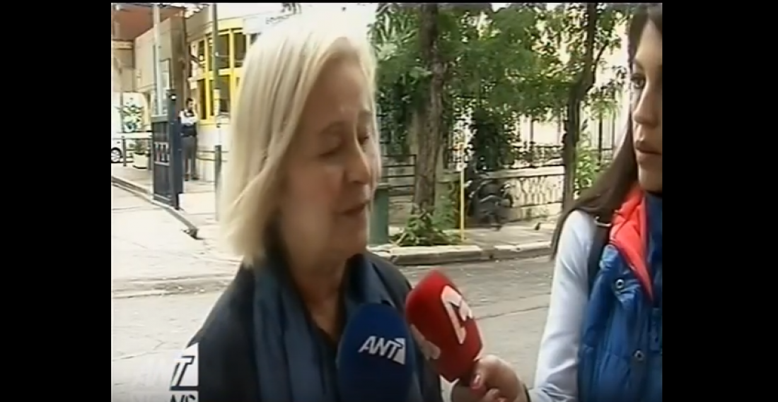 Η συζυγος του Λουκά Παπαδήμου εμφανώς σοκαρισμένη από την επίθεση στον πρώην πρωθυπουργό με παγιδευμένο φάκελο με εκρηκτικά μέσα στο αυτοκίνητό του.