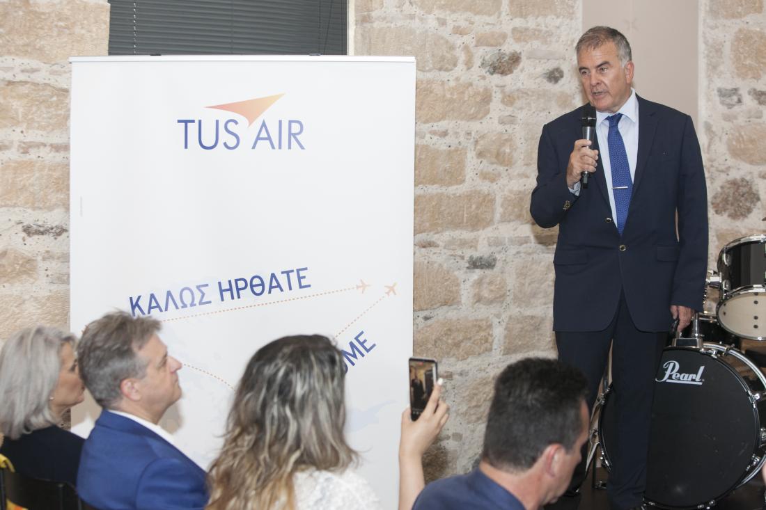 Ο κ. Yaron Eskeles παρουσίασε το όραμα, το προϊόν και τις προσφορές της TUS Airways στην Ελληνική αγορά, καθώς επίσης το στόλο και τα πλάνα ανάπτυξής της και δήλωσε πως: «Η TUS Airways εισάγει ένα νέο αεροπορικό μοντέλο στην Ελλάδα χρησιμοποιώντας ιδιόκτητο στόλο που απαρτίζεται από 7 jets Fokker 80/100. Φέτος η TUS Airways διεύρυνε το δίκτυό της με απευθείας πτήσεις από Αθήνα, Θεσσαλονίκη, Ιωάννινα, Αλεξανδρούπολη, Πάτρα, Σκιάθο, Πρέβεζα και Κω προς Λάρνακα. Πιστεύουμε στη δυναμική του Διεθνή Αερολιμένα Αθηνών και στις προοπτικές ανάπτυξης της Ελληνικής Αγοράς για την TUS Airways, και έχουμε ήδη πλάνα για περαιτέρω ανάπτυξη σε ελκυστικούς προορισμούς από την Αθήνα και άλλες πόλεις της Ελλάδας.»