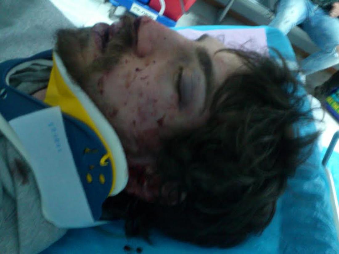 Λίγο μετά τις τρεις το μεσημέρι και ενώ ο νεαρός περπατούσε στη συμβολή των οδών Παπαδά και Κουσιανόφκσι, στους Αμπελοκήπους, ένα πλήθος χρυσαυγιτών που βρίσκοντα σε κοντινή καφετέρια, φαίνεται πως τον πέρασαν για αντιεξουσιαστή και υπό την μορφή αντιποίνων για την επίθεση που δέχτηκαν τα γραφεία τους το πρωί του επιτέθηκαν και τον ξυλοκόπησαν άγρια, τραυματίζοντάς σε τέτοιο βαθμό που κρίθηκε αναγκαία η μεταφορά του στο Νοσοκομείο Ερυθρός Σταυρός, όπου νοσηλεύται με τραύματα στο κεφάλι και το σώμα, όπως άλλωστε αποδεικνύεται και από τις σοκαριστικές φωτογραφίες που δημοσιεύει το Bloko.gr. Μάλιστα, οι άγνωστοι δράστες του άρπαξαν και ένα σακίδιο που είχε μαζί του στο οποίο είχε φωτογραφική μηχανή και κινητό τηλέφωνο.