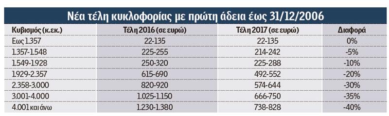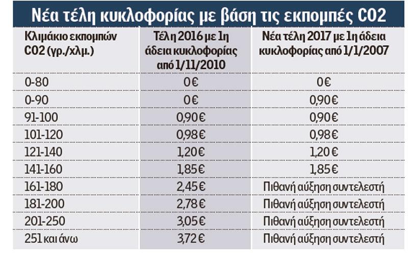 Από 22 έως 828€ τα τέλη κυκλοφορίας του 2017 - Δείτε πίνακες
