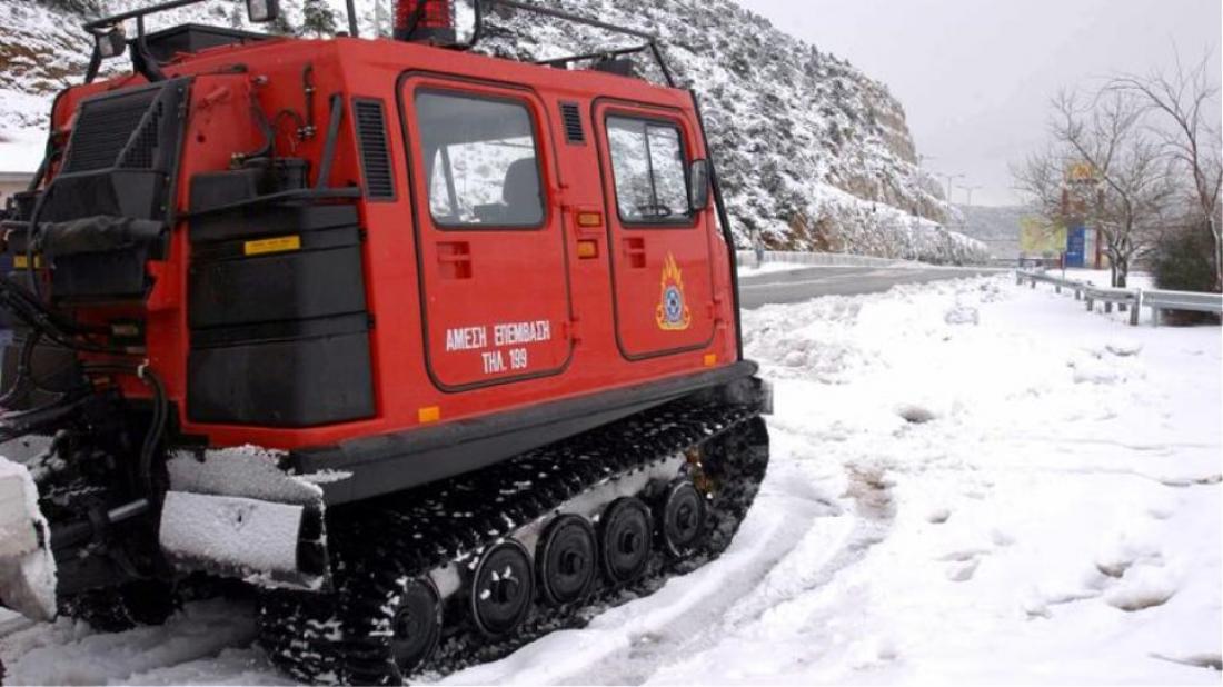 Επειδή πρόκειται για δύσβατο σημείο τα μηχανήματα ανοίγουν το δρόμο για να κατέβουν οι τρεις κτηνοτρόφοι από το σημείο.