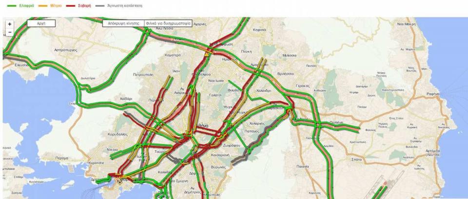 Οι περισσότεροι κεντρικοί δρόμοι είναι μποτιλιαρισμένοι. Η Κηφισίας στο ρεύμα προς Αθήνα και η Βασιλέως Κωνσταντίνου, η λεωφόρος Αλεξάνδρας και στα δύο ρεύματα, η οδός Πατησίων και η Λιοσίων, η λεωφόρος Συγγρού στο ρεύμα προς Αθήνα, η Θηβών και στα δύο ρεύματα και η Κατεχάκη είναι οι δρόμοι που οι οδηγοί αντιμετωπίζουν τα περισσότερα προβλήματα.