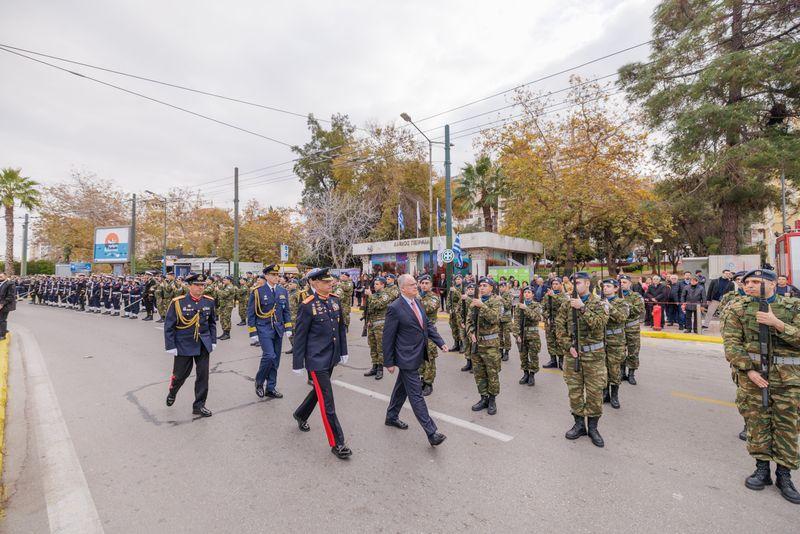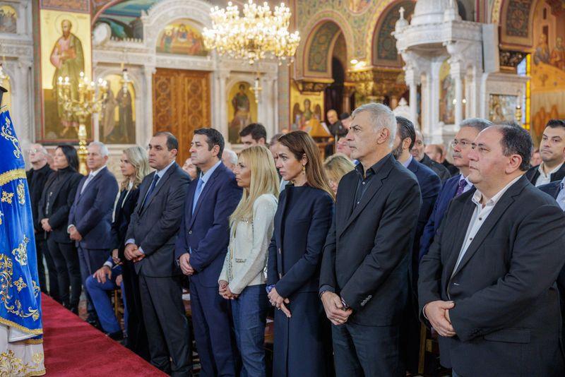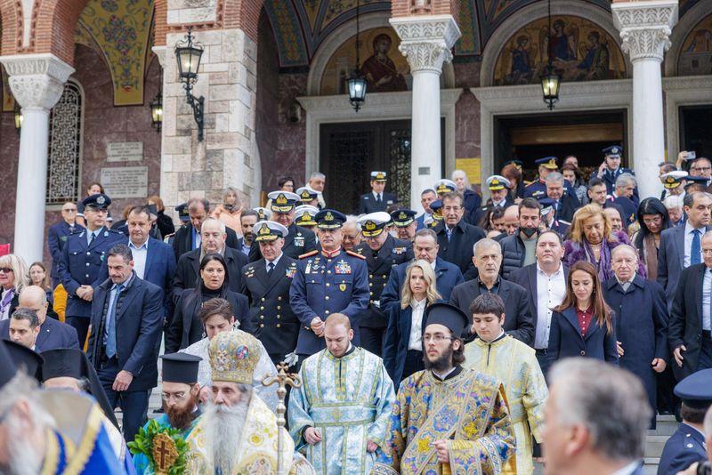 O εορτασμός ξεκίνησε με την Αρχιερατική Θεία Λειτουργία στον Καθεδρικό Ιερό Ναό της Αγίας Τριάδος Πειραιώς, όπου τον κ. Τασούλα υποδέχθηκαν ο Μητροπολίτης Πειραιώς και Φαλήρου κ.κ. Σεραφείμ, ο Δήμαρχος Πειραιώς κ. Γιάννης Μώραλης και οι Υπουργοί Ναυτιλίας και Νησιωτικής Πολιτικής κ. Βασίλης Κικίλιας, ως εκπρόσωπος της κυβερνήσεως και Κοινωνικής Συνοχής και Οικογένειας κυρία Δόμνα Μιχαηλίδου, καθώς και ο Αρχηγός ΓΕΕΘΑ Στρατηγός Δημήτριος Χούπης, ενώ κατά την άφιξη του κ. Προέδρου άγημα των Ενόπλων Δυνάμεων και Στρατιωτική Μουσική του Πολεμικού Ναυτικού και του Λιμενικού Σώματος – Ελληνικής Ακτοφυλακής (ΛΣ-ΕΛΑΚΤ) απέδωσαν τιμές.