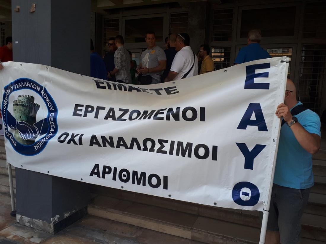 Συμβολική διαμαρτυρία έξω από το δικαστικό μέγαρο της Θεσσαλονίκης πραγματοποίησαν το πρωί μέλη της τοπικής Ένωσης Αστυνομικών Υπαλλήλων, με αφορμή την επίθεση με μολότοφ, που σημειώθηκε το περασμένο Σάββατο εναντίον αστυνομικής κλούβας, που μετέφερε διμοιρία φύλαξης του τουρκικού προξενείου.