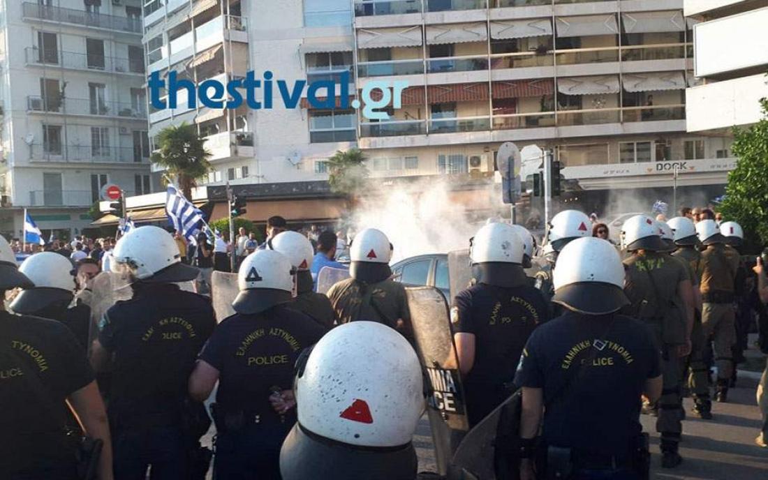 Ένταση και μικροεπεισόδια σημειώθηκαν στο κέντρο της Θεσσαλονίκης στη διάρκεια της πορείας διαμαρτυρίας για τη συμφωνία των Πρεσπών.