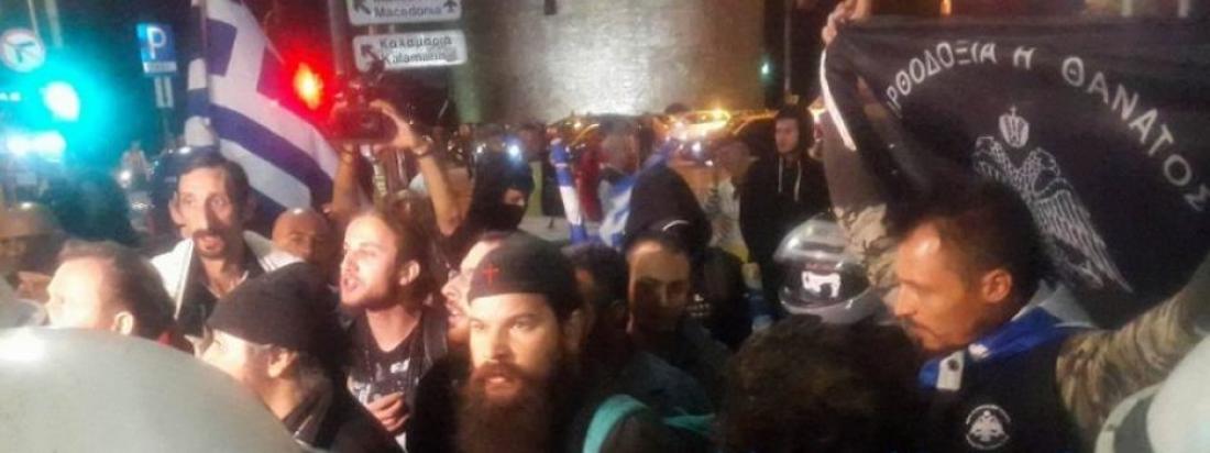 : Ένταση σημειώθηκε έξω από το θέατρο «Αριστοτέλειον» όταν άτομα που κρατούσαν ελληνικές σημαίες και εικόνες, επιχείρησαν να διακόψουν την θεατρική παράσταση η «Ώρα του Διαβόλου».