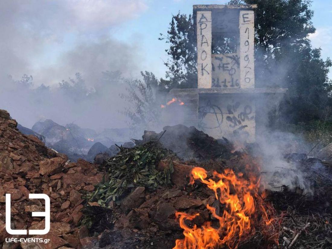 Στο έργο της κατάσβεσης έλαβαν μέρος τέσσερα οχήματα με 10 άνδρες του Πυροσβεστικού Σώματος .