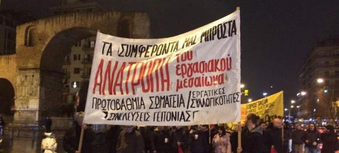 Πορεία διαμαρτυρίας, πραγματοποιούν αυτήν την ώρα μέλη κομμάτων της εξωκοινοβουλευτικής Αριστεράς και συλλογικοτήτων στο κέντρο της Θεσσαλονίκης , με αφορμή το πολυνομοσχέδιο με τα προαπαιτούμενα για την ολοκλήρωση της τρίτης αξιολόγησης.