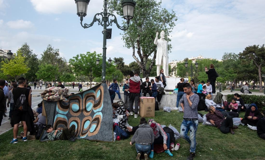 Στο άγαλμα Βενιζέλου, στο κέντρο της Θεσσαλονίκης, διανυκτέρευσαν πρόσφυγες και μετανάστες, που βρίσκονται στο συγκεκριμένο σημείο από το μεσημέρι της Πέμπτης.