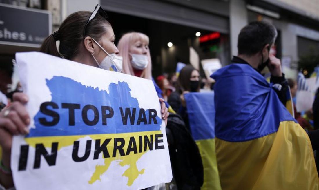 Συγκέντρωση και πορεία διαμαρτυρίας, με αντιπολεμικό περιεχόμενο για τη ρωσική στρατιωτική επέμβαση στην Ουκρανία, πραγματοποίησαν το μεσημέρι, φοιτητές και μαθητές.
