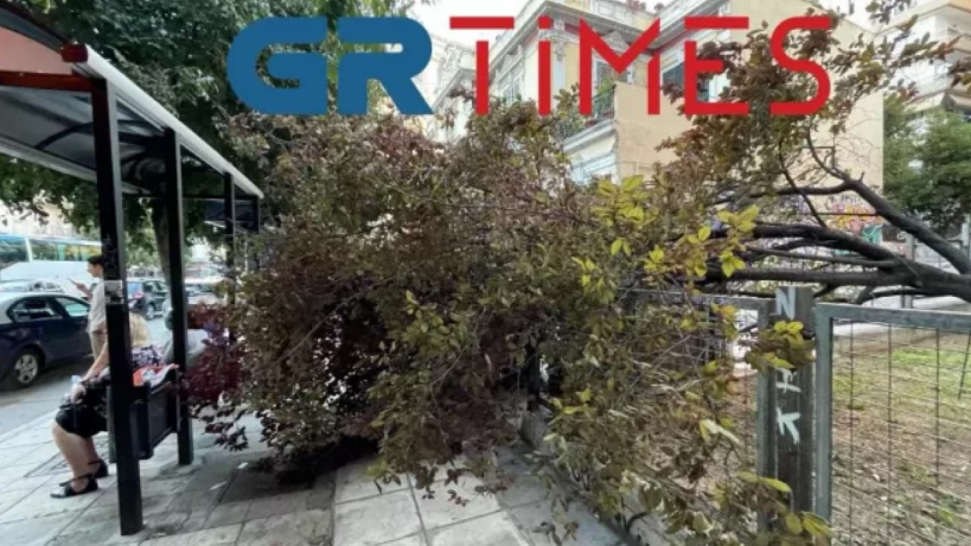 Δέντρο έπεσε δίπλα από στάση λεωφορείου λόγω ισχυρών ανέμων στο κέντρο της Θεσσαλονίκης, χωρίς ευτυχώς να τραυματιστεί κανείς, καθώς από καθαρή τύχη δεν περνούσε κάποιος περαστικός από το σημείο.