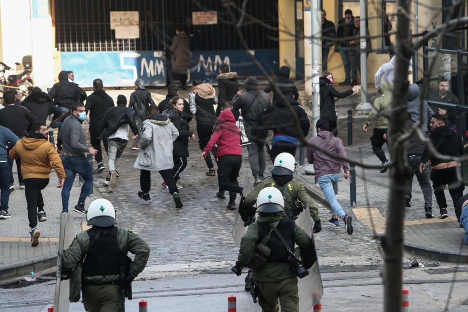 Οι συγκεντρωμένοι κινήθηκαν εναντίον των δυνάμεων των ΜΑΤ πετώντας ξύλινα δοκάρια και άλλα αντικείμενα, ενώ αναποδογύρισαν κάδο απορριμμάτων και τον πυρπόλησαν. Οι αστυνομικοί τους απώθησαν, ενώ προχώρησαν και σε μία προσαγωγή.