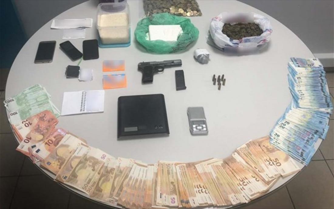 Σύμφωνα με την Αστυνομία, ο άντρας είχε αναλάβει την παραλαβή, αποθήκευση και διακίνηση, κυρίως κοκαΐνης, στην ελληνική επικράτεια, ενώ σε έρευνα που ακολούθησε τη σύλληψή του βρέθηκαν στην κατοχή του ένα δέμα κοκαΐνης, βάρους 662 γραμμαρίων, δύο δέματα ακατέργαστης κάνναβης, βάρους 235 γραμμαρίων, δύο ηλεκτρονικές ζυγαριές, ένα πιστόλι με γεμιστήρα και επτά φυσίγγια, όπως επίσης το χρηματικό ποσό των 8.410 ευρώ.