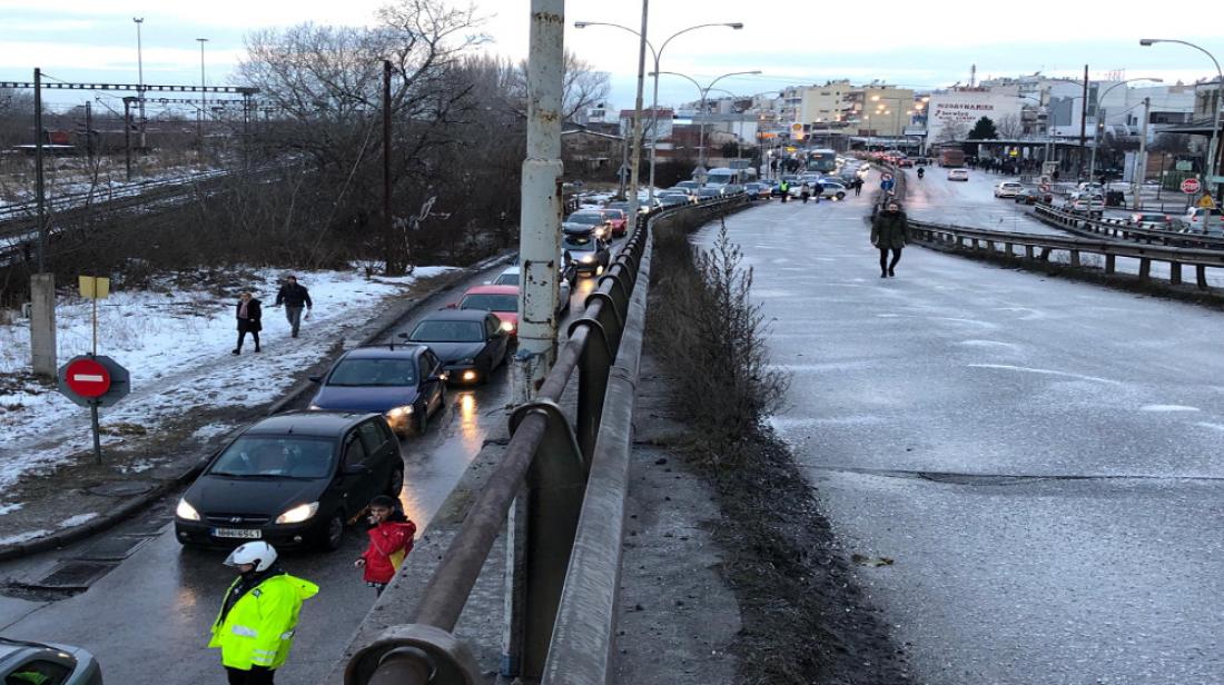 Στην οδό Μοναστηρίου έχει δημιουργηθεί μποτιλιάρισμα καθώς η κυκλοφορία των οχημάτων έχει διακοπεί και στα δύο ρεύματα της γέφυρας μέχρι να ολοκληρωθεί η απομάκρυνση των εμπλεκόμενων οχημάτων. Η κίνηση εκτρέπεται κάτω από τη γέφυρα, ενώ συνεργεία του Δήμου Κορδελιού - Ευόσμου ρίχνουν στο οδόστρωμα αλάτι.