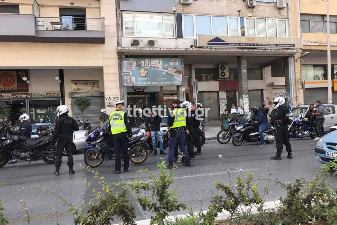 Την ίδια ώρα περίπου είκοσι οχήματα ξεκίνησαν από τον Λευκό Πύργο για να πραγματοποιήσουν μοτοπορεία στο κέντρο της πόλης. Κινήθηκαν στις λεωφόρους Μεγ. Αλεξάνδρου και Βασιλίσσης Όλγας και εν συνεχεία στις οδούς Τσιμισκή και Πολυτεχνείου. Μπροστά στα δικαστικό μέγαρο ακινητοποιήθηκαν από αστυνομικούς των ομάδων Ζ και ΔΙ.ΑΣ.