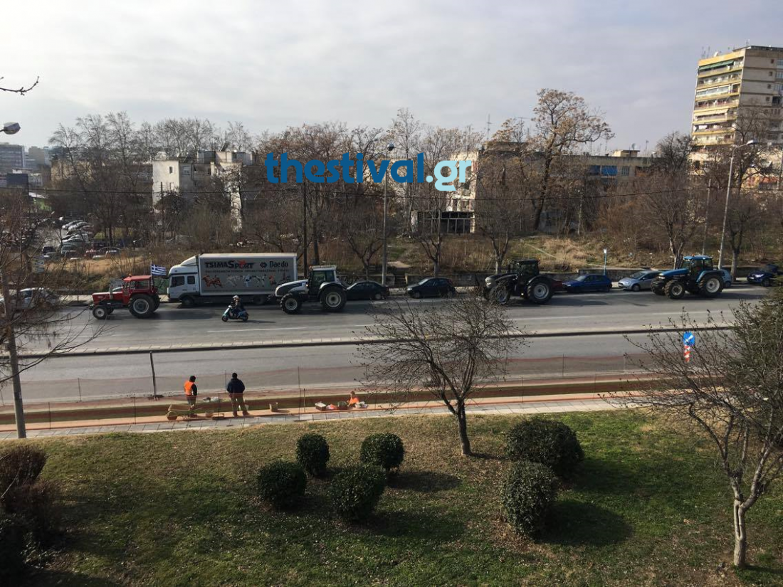 Αγρότες από το μπλόκο του Δερβενίου με τα αγροτικά τους οχήματα μπήκαν στο κέντρο της Θεσσαλονίκης.