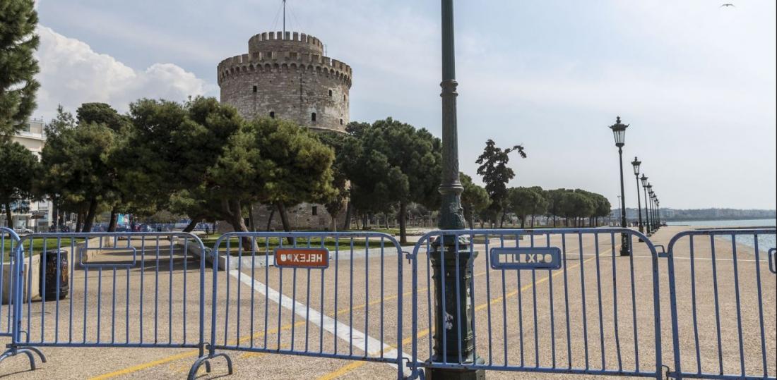 Η Νέα Παραλία παραμένει κλειστή για τους πολίτες από τις 31 Μαρτίου, οπότε και τοποθετήθηκαν σιδερένια κιγκλιδώματα από το άγαλμα του Βότση έως το Μέγαρο Μουσικής. Οι όποιες μετακινήσεις επιτρέπονται μόνο τις καθημερινές, από τις 8 το πρωί έως τις 2 το μεσημέρι.