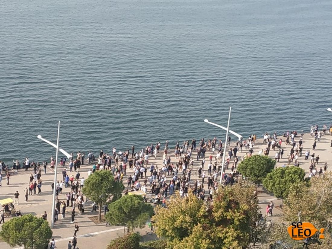 Χιλιάδες Θεσσαλονικείς βρέθηκαν στην Νέα Παραλία παρακολουθώντας τους ελιγμούς των μαχητικών αεροσκαφών, ξεσπώντας σε χειροκροτήματα.