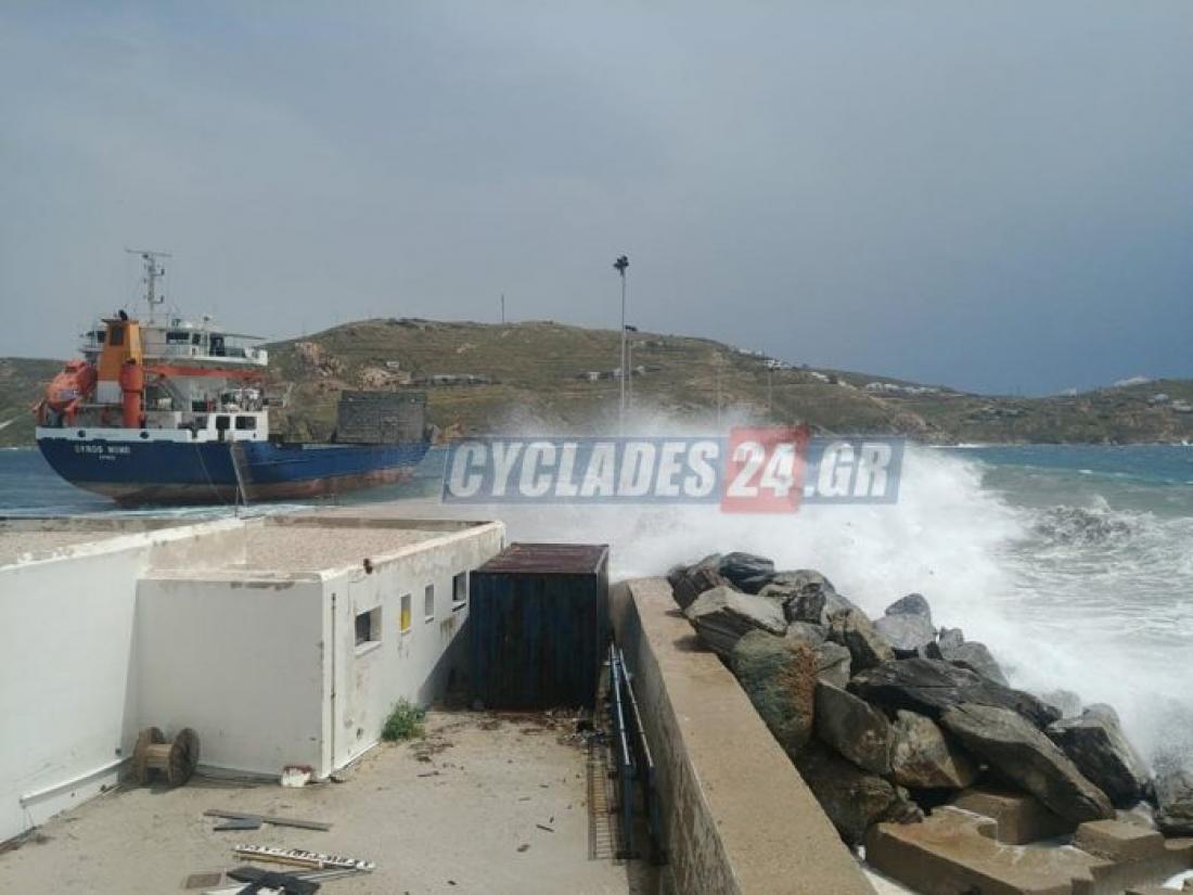Σύμφωνα με πληροφορίες του Cyclades24,gr, έσπασαν οι κάβοι στο πλοίο με αποτέλεσμα, να παρασυρθεί από τους ισχυρούς Νότιους ανέμους που επικρατούσαν εκείνη την ώρα.