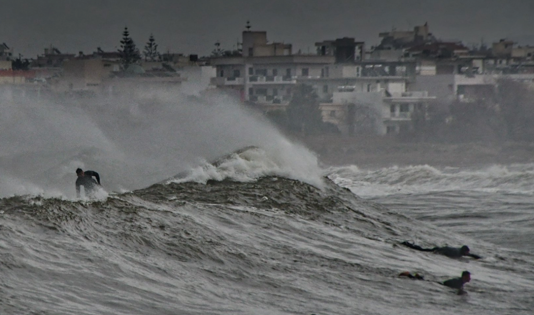Δεν ήταν λίγοι αυτοί που έσπευσαν να εκμεταλλευθούν τον αέρα και τα τεράστια κύματα, κάνοντας… σερφ σε παραλίες της πόλης, όπως αποτυπώνει ο φακός του Παύλου Μπουζάκη και αναπαράγει το zarpanews.gr