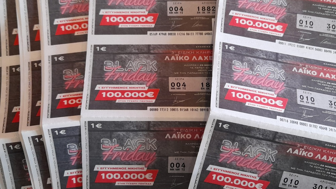 Σε ρυθμό Black Friday κινείται το Λαϊκό Λαχείο, με την ειδική κλήρωση του ιστορικού παιχνιδιού να μοιράζει εγγυημένα 100.000 ευρώ την Παρασκευή 29 Νοεμβρίου.