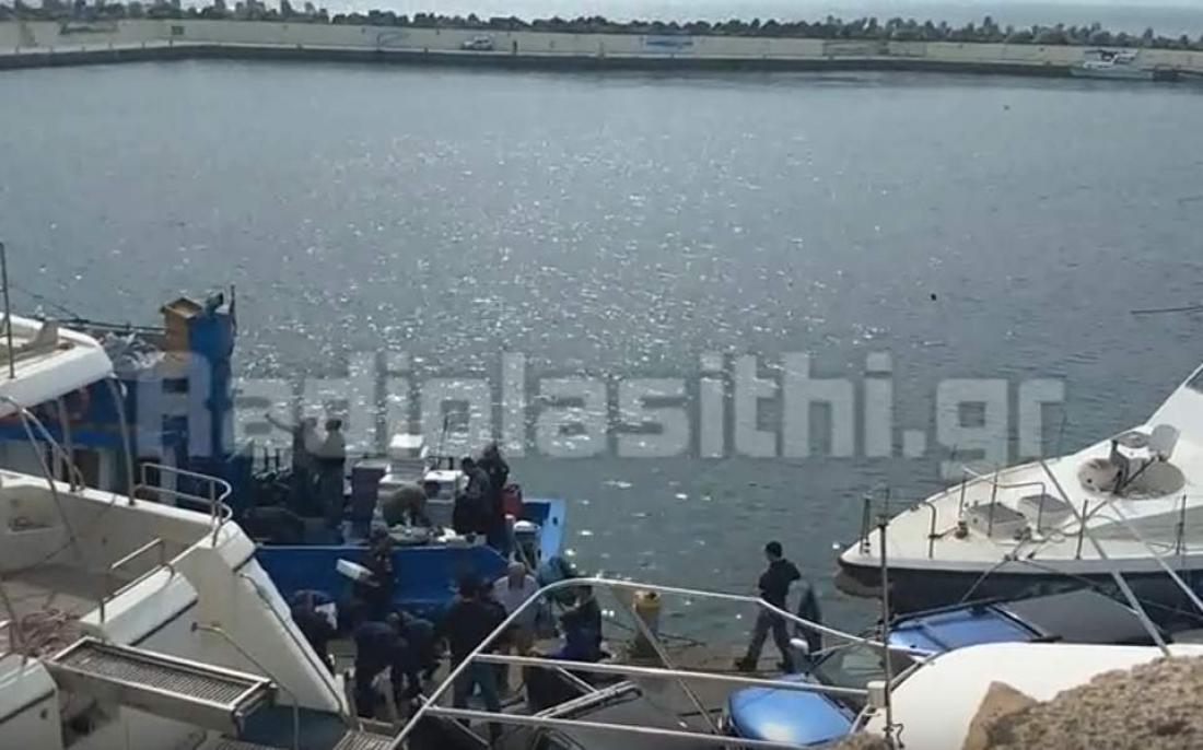 Οι άνδρες του πληρώματος βρίσκονται στο Λιμεναρχείο μετά και τη σύλληψή τους.