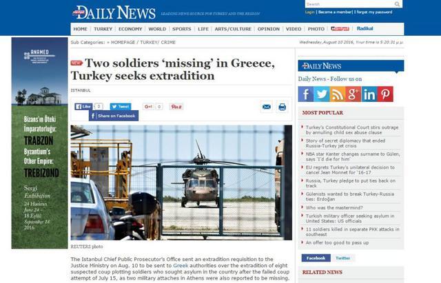Σύμφωνα με την Hurriyet «Η τύχη τους αγνοείται καθώς οι δύο ακόλουθοι δεν συμμετείχαν σε τελετή παράδοσης του ΝΑΤΟ στις 29 Ιουλίου στη ναυτική βάση της Σαλαμίνας, κοντά στην ελληνική πρωτεύουσα». H τουρκική εφημερίδα αναδημοσιεύει ανεπιβεβαίωτες πληροφορίες ότι οι δύο Τούρκοι δεν βρίσκονται πλέον στην Ελλάδα αλλά έχουν διαφύγει στην Ιταλία.