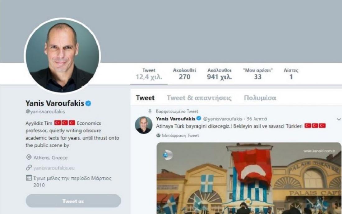 Κυβερνο-επίθεση από Τούρκους χάκερς δέχθηκε ο λογαριασμός του Γιάνη Βαρουφάκη στο Twitter ο οποίος γέμισε αναρτήσεις τουρκικού και εθνικιστικού περιεχομένου.